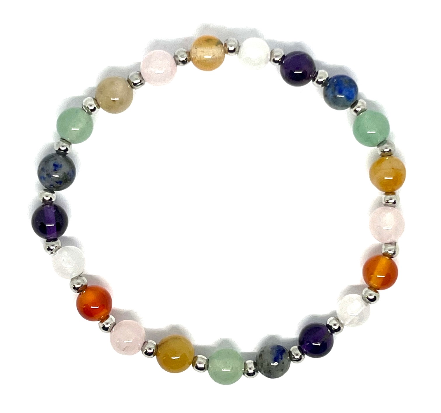 Jedes Stück trägt sorgfältig ausgewählte Edelsteine mit energetischer Bedeutung, teilweise ergänzt durch Rudraksha-Perlen, die traditionell in der Meditation und insbesondere im Yoga Verwendung finden. Dadurch verbindet dieser Schmuck spirituelle Tiefe mit zeitloser Eleganz.